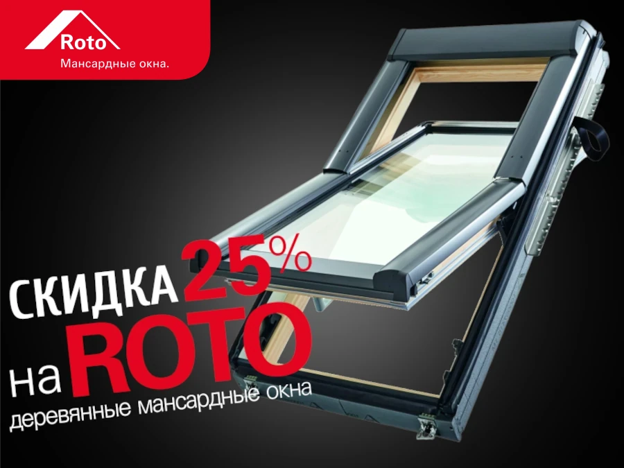 Горячая акция от Roto: −25% на мансардные окна! С 17 октября по 30 ноября 2025 года покупайте премиальные немецкие окна по суперцене. Товар в наличии, количество ограничено. Скидка действует на позиции из спецлиста и не суммируется с другими акциями. Не упустите выгоду!