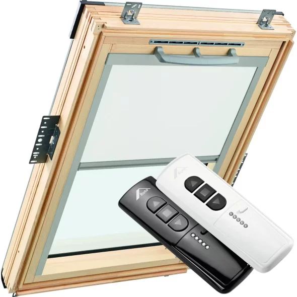 - Электрический мотор 24 В: простое подключение к электрическим мансардным окнам (для установки электрической шторы на окно с ручным управлением требуется комплект модернизации — уточняйте у менеджера).