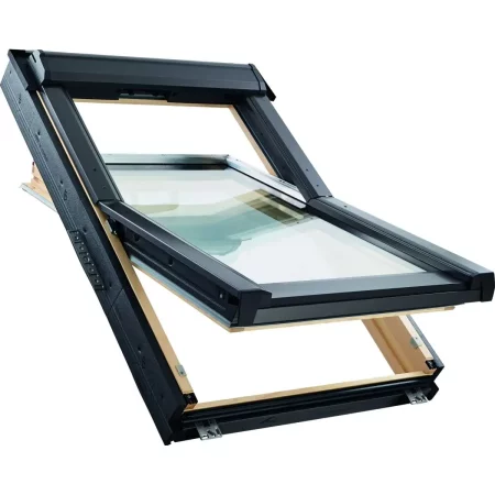 Cреднеповоротное мансардное окно Roto для скатной крыши 15–90° на раме из ПВХ-пластика. Ручка сверху.