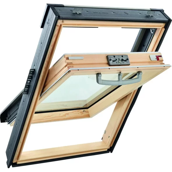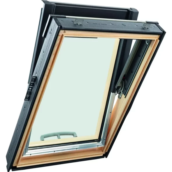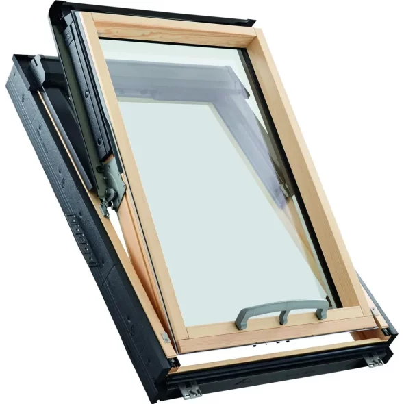 Окно мансардное деревянное с центральной осью поворота створки R4 H200. Ручка снизу.