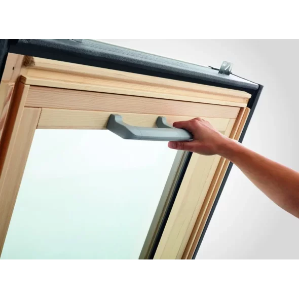 Окно мансардное деревянное с верхней осью поворота створки R8 H200. Ручка снизу.