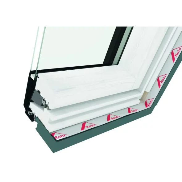 Окно мансардное деревянное с центральной осью поворота створки RotoQ Q4 H100L1. Ручка сверху.