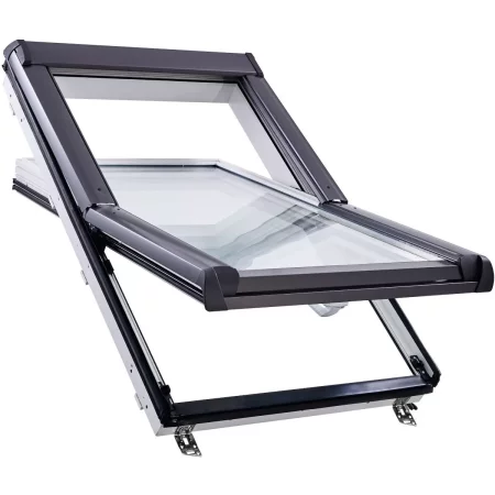 Популярное среднеповоротное мансардное окно Roto для скатной крыши 15–90° на раме из ПВХ-пластика. Ручка снизу.
