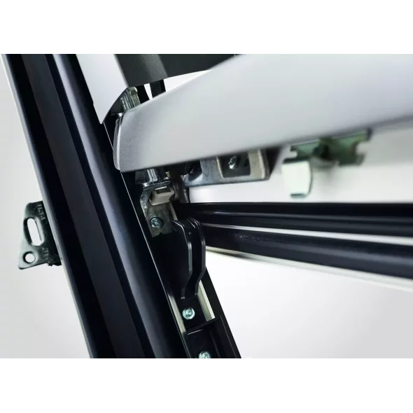 - 2 Регулируемая фурнитура позволяет настроить ключом изнутри мансарды усилие торможения и промежуточное положение створки, а также отрегулировать зазоры между створкой и рамой, например, при усадке стропильной системы крыши.