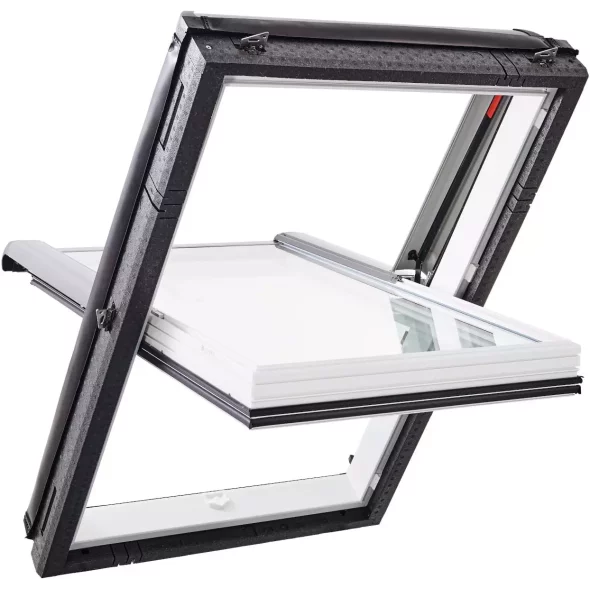 Окно мансардное пластиковое с центральной осью поворота створки RotoQ Q4 K200. Ручка сверху.