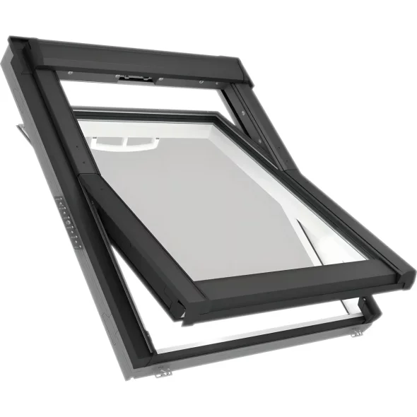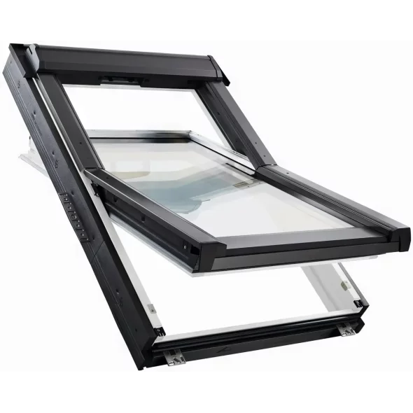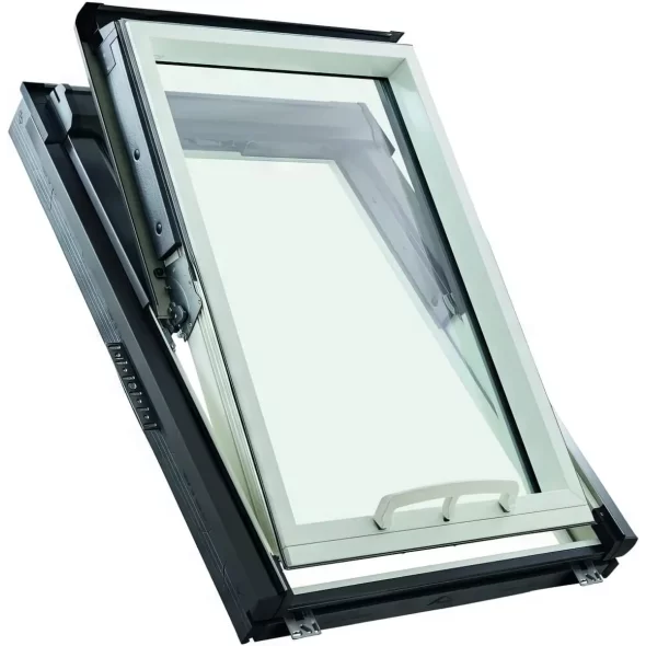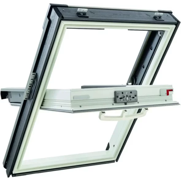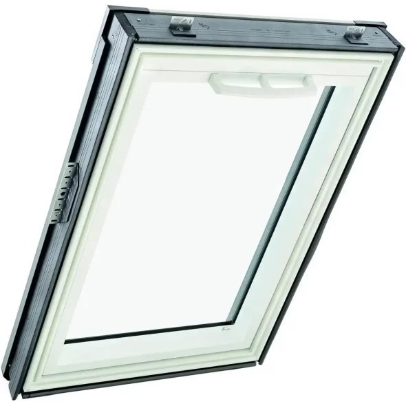Окно мансардное пластиковое с центральной осью поворота створки Designo R6 K200. Ручка снизу.