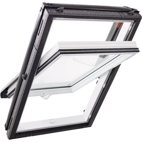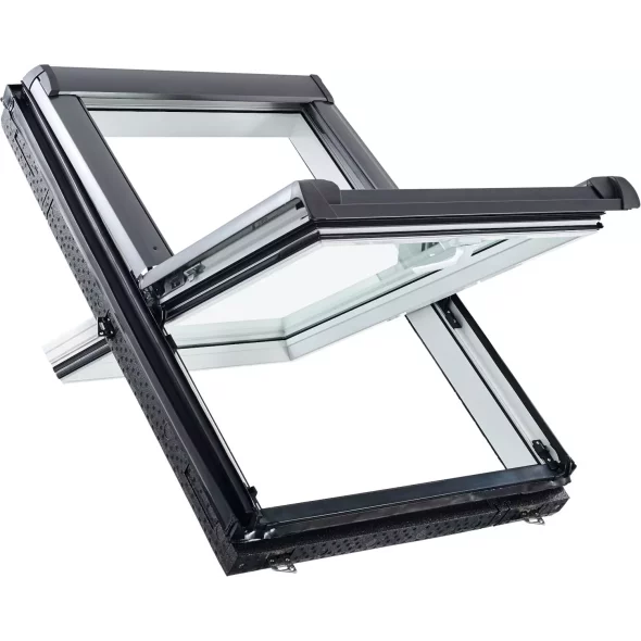 Окно мансардное пластиковое с центральной осью поворота створки Designo R6 K200. Ручка снизу.