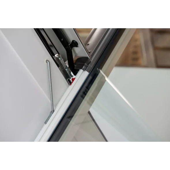 - Регулировка усилия торможения и промежуточного положения створки изнутри мансарды.
