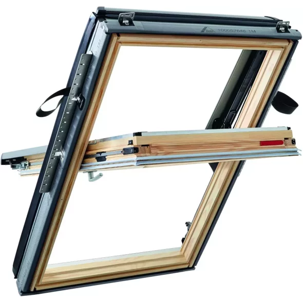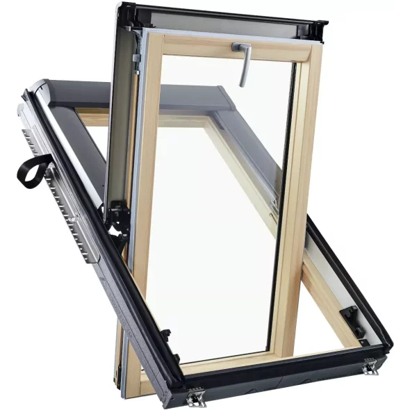 Окно мансардное деревянное с центральной осью поворота створки R4 H200. Ручка снизу.