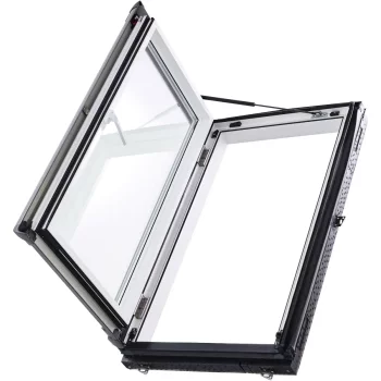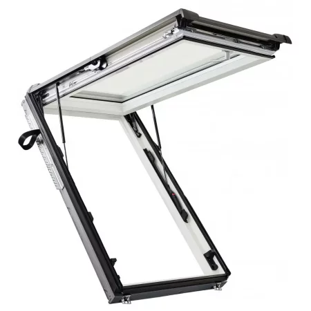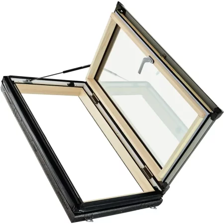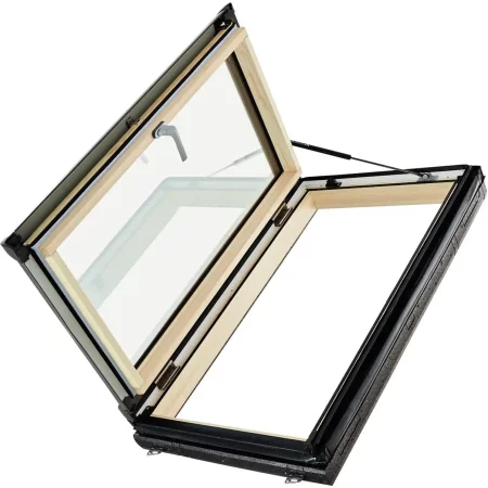 Аварийный выход для скатной крыши 20–79° на раме из ПВХ-пластика. Ручка снизу.