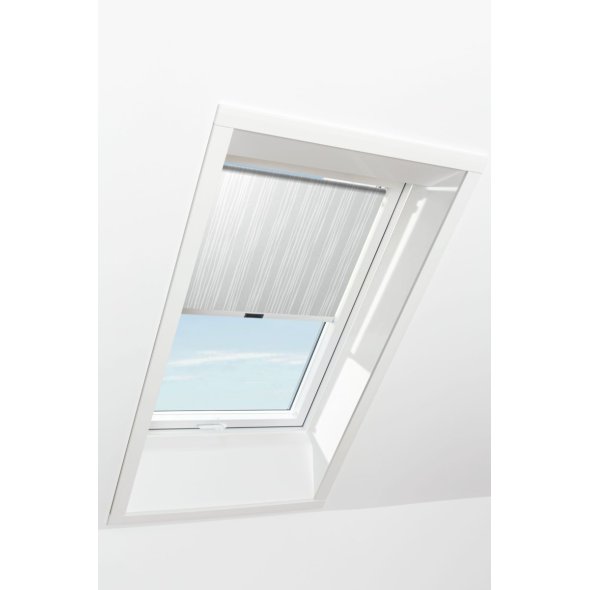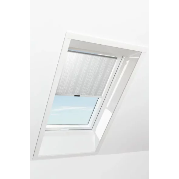 Рулонные полупрозрачные шторы Rollo Standard ZRS предлагают недорогое базовое решение для помещений, где главный приоритет — мягкий солнечный свет без бликов и защита конфиденциальности. Вы можете выбирать между 16 различными дизайнами и между более или менее сильной защитой от света. Шторы разделены на три уровня прозрачности: I — мене 10%, II — 10-20%, III — более 20%. Благодаря крючкам на раме, шторы можно фиксировать в 3-х положениях, что позволяет контролировать освещение чердака в широком диапазоне значений.