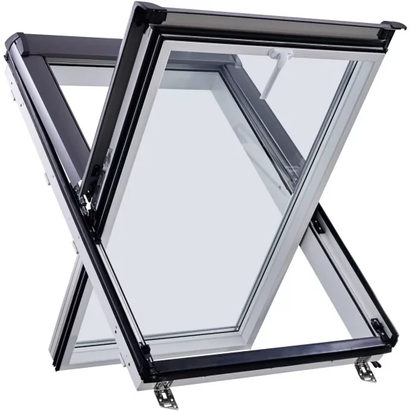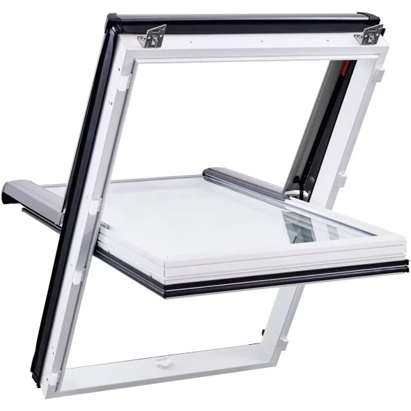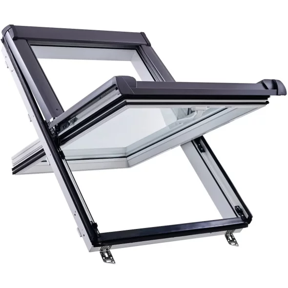 Окно мансардное пластиковое с центральной осью поворота створки Designo R6 K200. Ручка снизу.