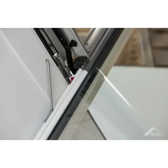 - Регулировка усилия торможения и промежуточного положения створки изнутри мансарды.